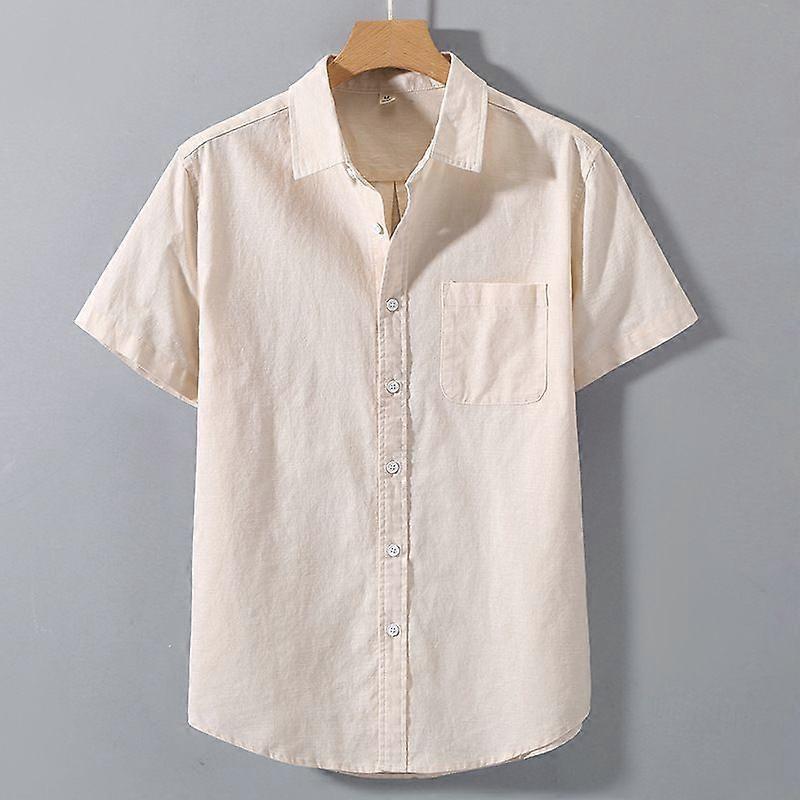 Men's Linen Short-Sleeved Lapel Shirt Linen Men's Summer Green Business Casual Cotton And Linen Fabric Shirt