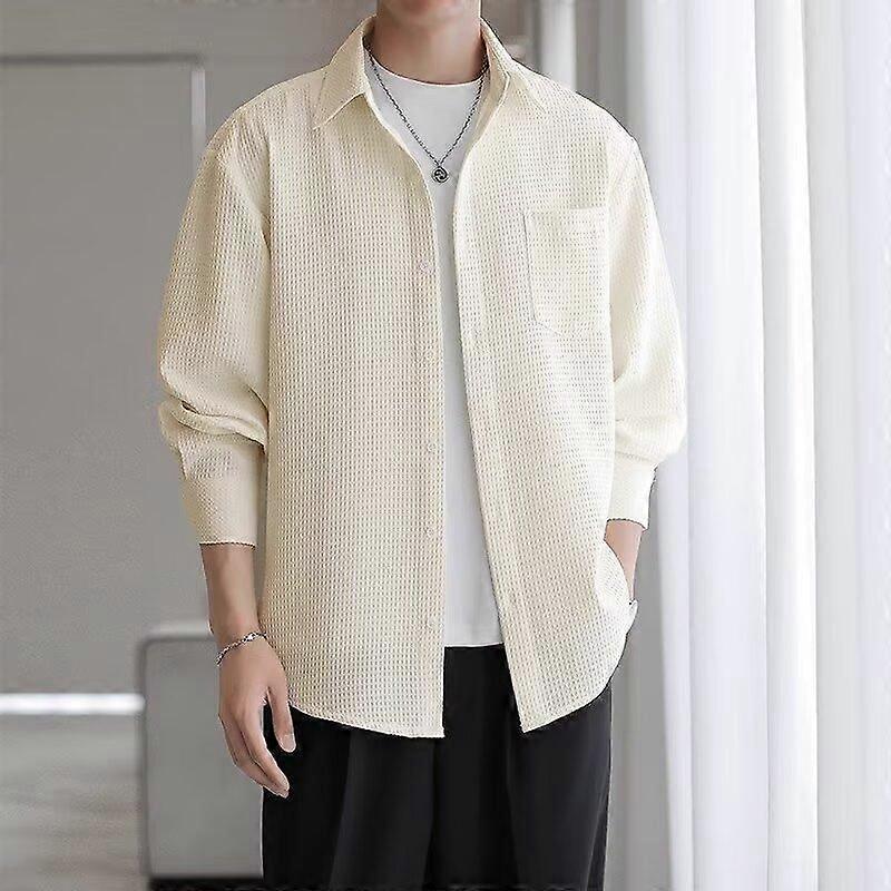Spring And Autumn Long-Sleeved Men's Round-Neck Cotton And Linen Shirt, Multi-Color Casual And Fashionable Chinese Style Stand-Up Collar One-Inch Shir