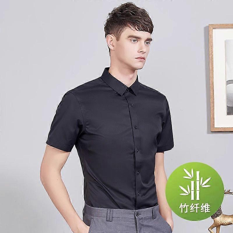 Bamboo Fiber Men's Non-Ironing White Shirt Short Sleeve Stretch Summer Shirt Business Clothing Top Elastic Business Shirt