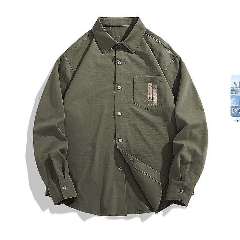 Summer Ice Silk Cool Long-Sleeved Shirt For Men, Loose And Drape, Off-The-Shoulder Top, Breathable Thin Shirt Jacket That Can Be Worn Over