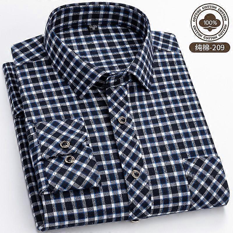 Spring And Autumn Men's Loose Long-Sleeved Shirt With A Light Blue Checkered Casual No-Iron Brushed Shirt For Men
