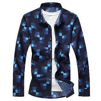 Spring And Autumn Men's Long-Sleeved Shirt Korean Slim-Fit Fashion Printed Color-Matching Men's Shirt Outer Wear
