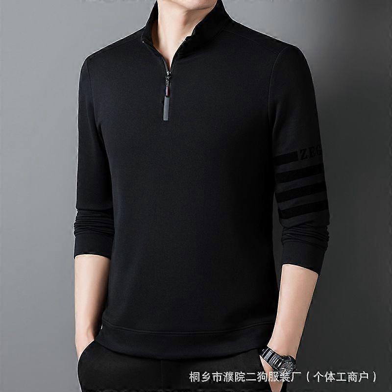 Long-Sleeved Polo Shirt For Men, Spring And Autumn Hoodie, Mid-Blue Casual Fashion Striped Solid Color Men's Long Trendy T-Shirt