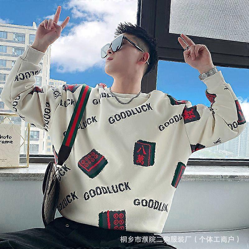 The Printed Autumn And Winter Hoodie For Men And The Spring And Autumn Korean-Style Round-Neck Loose Top Are Chic And Trendy In Hong Kong Style