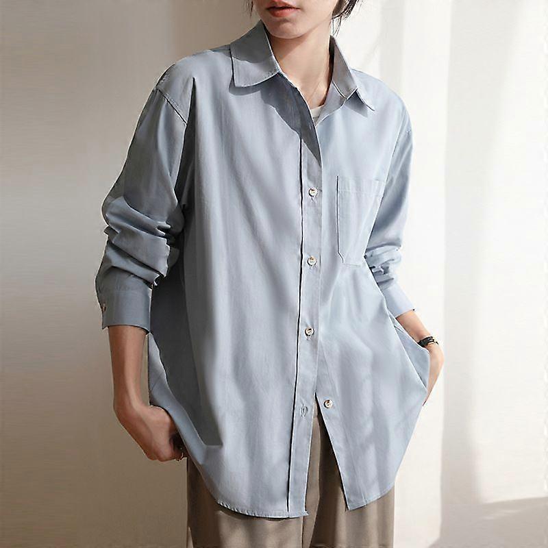 Real Shot Spring And Autumn Cotton Inner Long Sleeve Shirt Women's Stacked Top Korean Style White Commuter Professional Shirt
