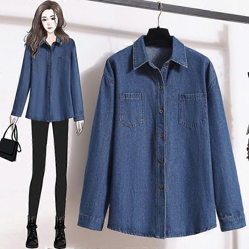 Real Shot Large Size Retro Denim Shirt Hong Kong Style Design Top Autumn Long Sleeve Korean Style Shirt Jacket