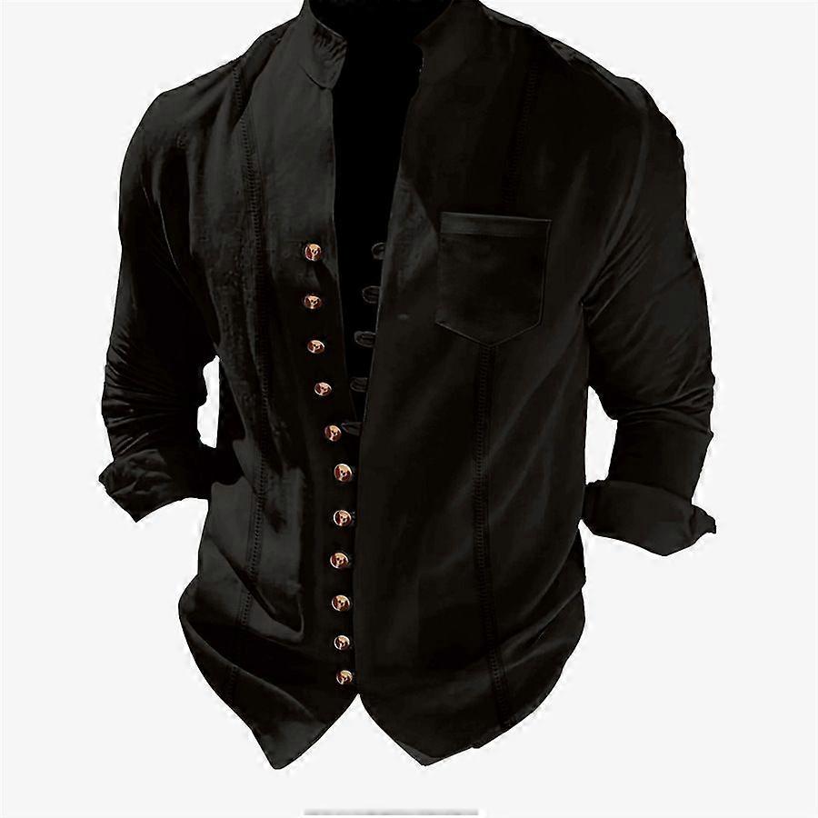 Wish Men's Cuban Style Vintage Cotton Linen Casual Loose Long Sleeve Shirt