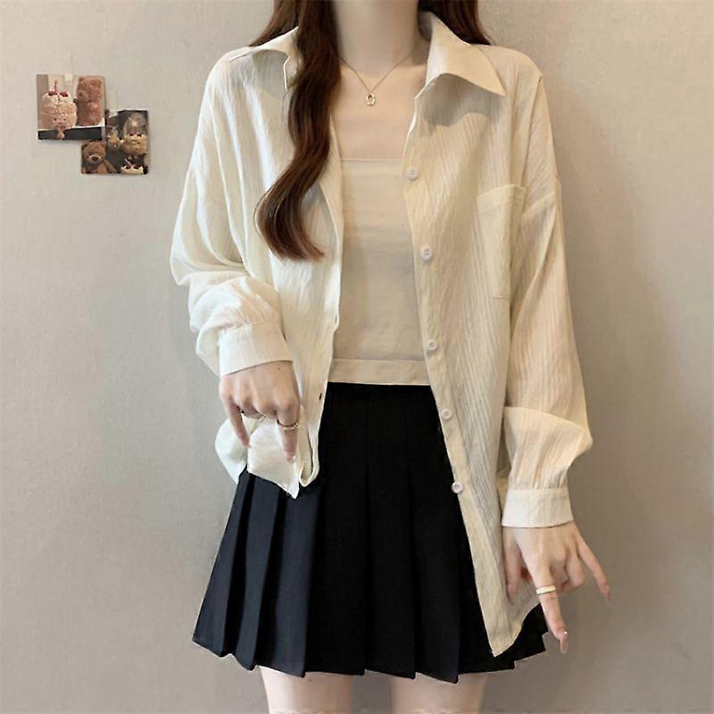 Fabric Name:Polyester Main Fabric Composition:Polyester (Polyester Fiber) Main Fabric Component 2:Polyester (Polyester Fiber) Pattern:Solid Color Style:Cardigan Sleeve Length:Long Sleeves Real Price:Fl 5F027#51 Style:Loose Garment Length:Regular Style (50Cm< Garment Length ≤65Cm) Collar Style:Polo Collar Sleeve Style:Regular Sleeves Color:Off-White Color:Sky Blue Color:Apricot Colour:Pink Size:M Size:L Size:Xl Size:2Xl Size:3Xl Size:4Xl Style Type:Elegant Commuting Front Flap:Single Row Of Buttons Main Fabric Composition Content:95% Or Above Style:Urban Style Style Type:Comfortable And Casual Product Category:Shirts Main Fabric Component 2 Content:80% (Inclusive) -90% (Exclusive