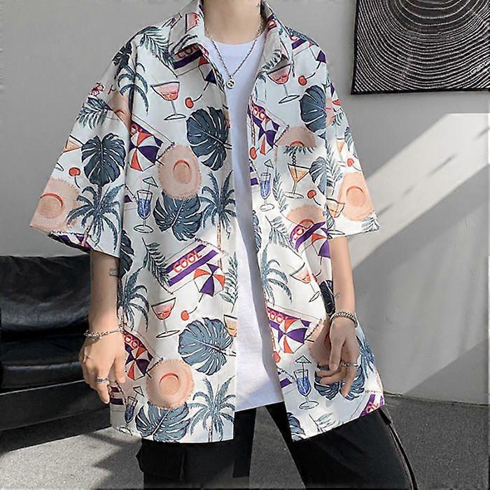 6082# [Official Picture-Short Shirt] Summer Top Loose Draping Short Sleeve Shirt Men's Ice Lining