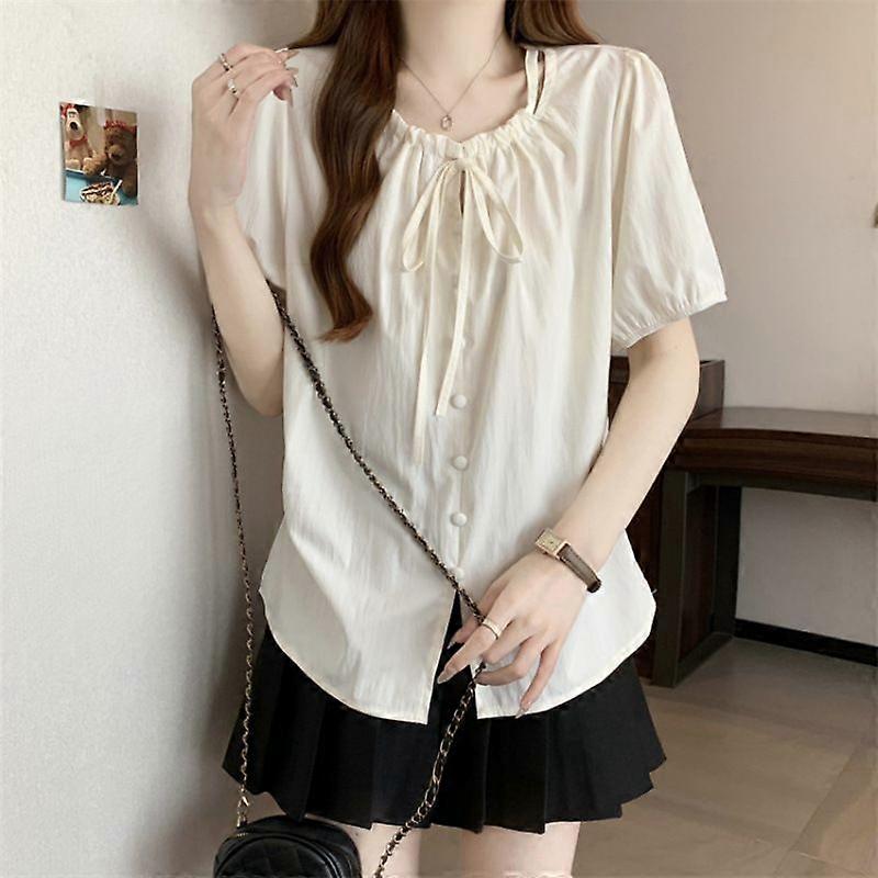 Women's Plus Size V-Neck Hollow Short-Sleeved Women's Summer Fat Girl's Giant Slim Shirt Top