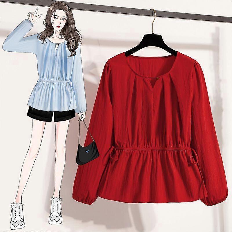 Design Sense Lace-Up Waist White Long-Sleeved Shirt Women's Loose Age-Reducing Doll Shirt Top