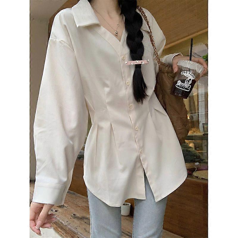 Real Shot Real Price Long Sleeve Shirt Women's Waist Shirt Shirt Design Sense Niche Top