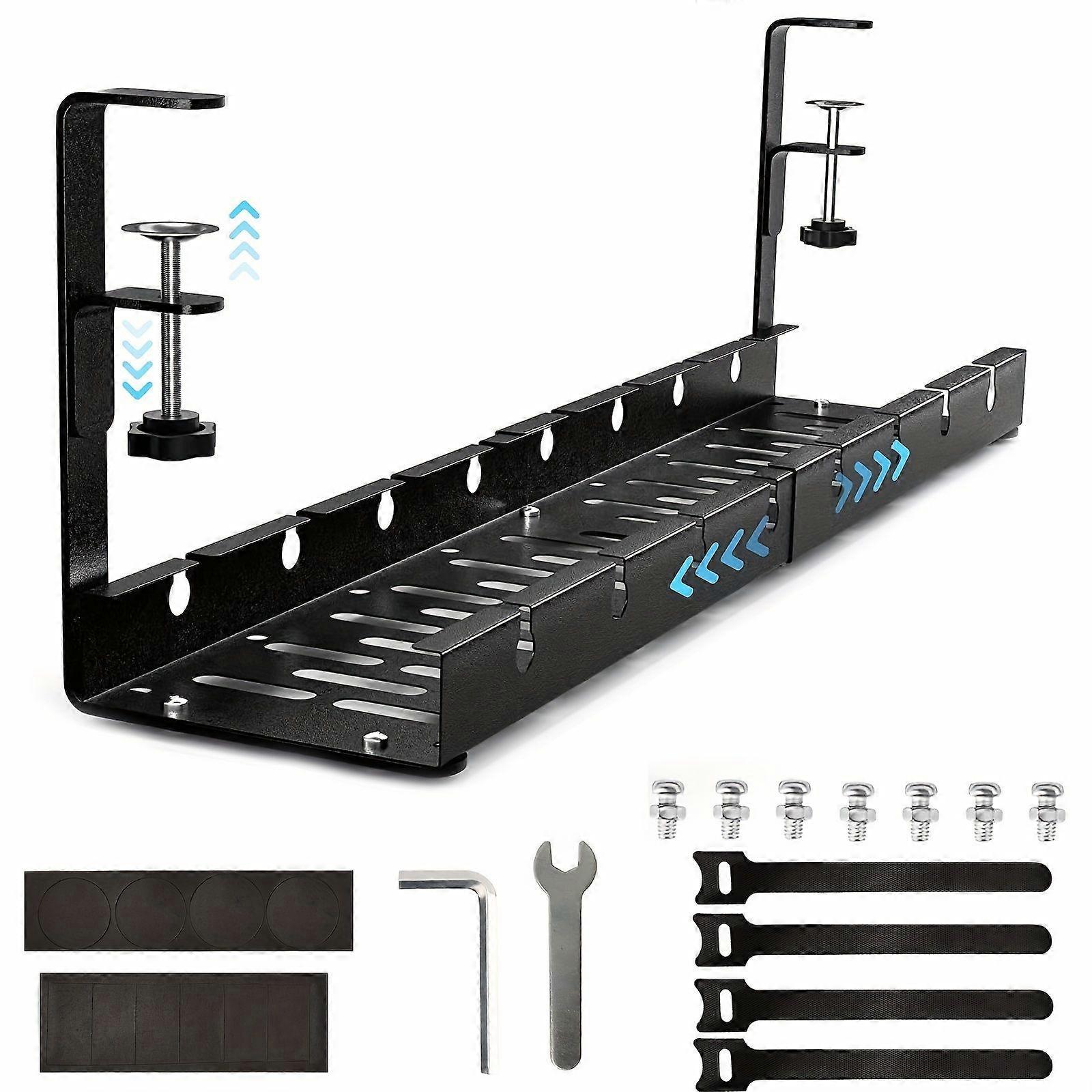 1pc Desk Cable Tidy Trays, Cable Management Under Desk, No-Drill Cable Basket Metal, Adjustable Cable Management Tray, Black Cable Duct Table For Home