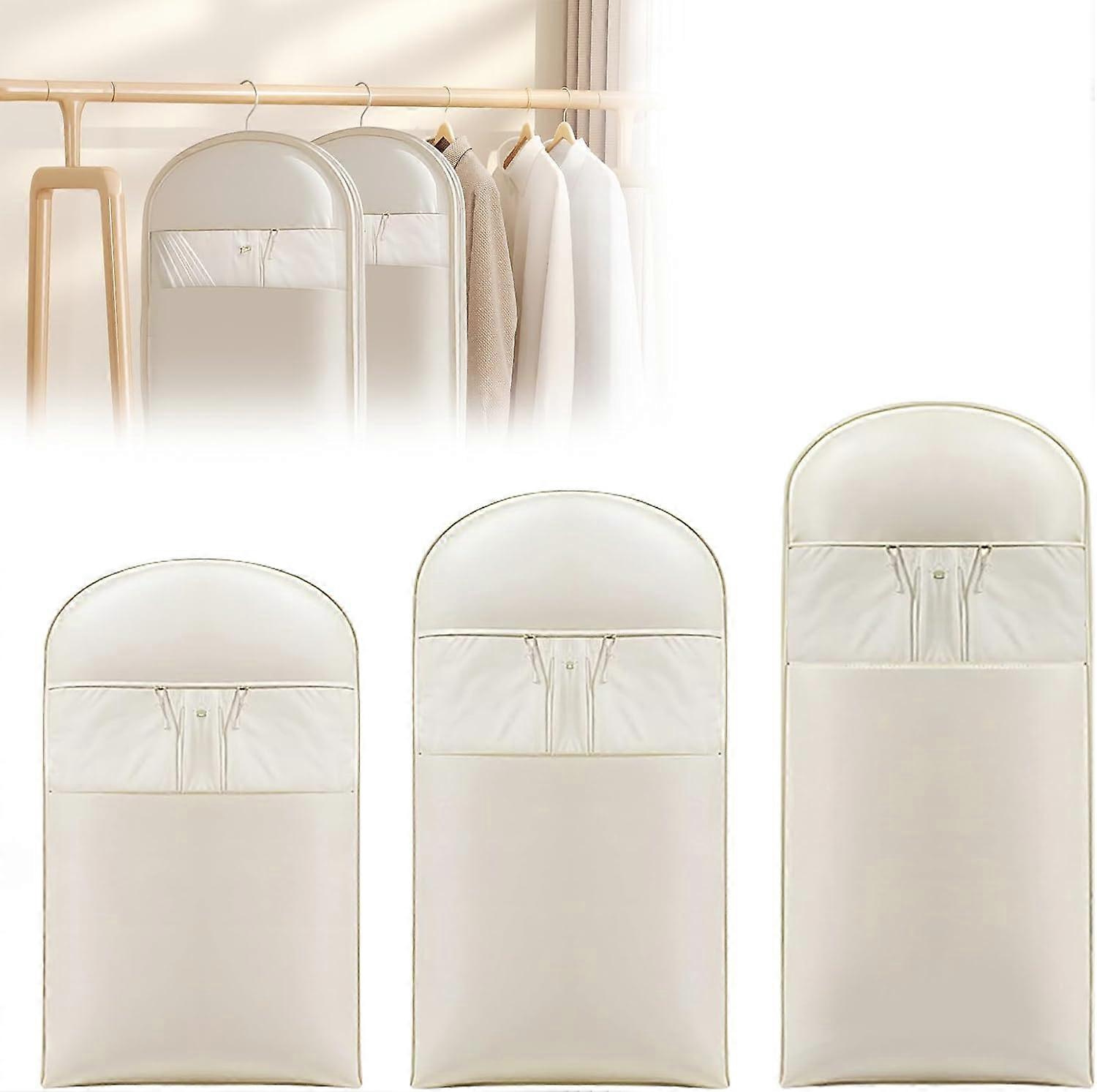 3Pcs Space Saving Hanging Garment Bag with Self Compression Zipper, Storage Bags Space Saver Closet Organizers Dust Cover 3 sizes for Down Coat Clothe
