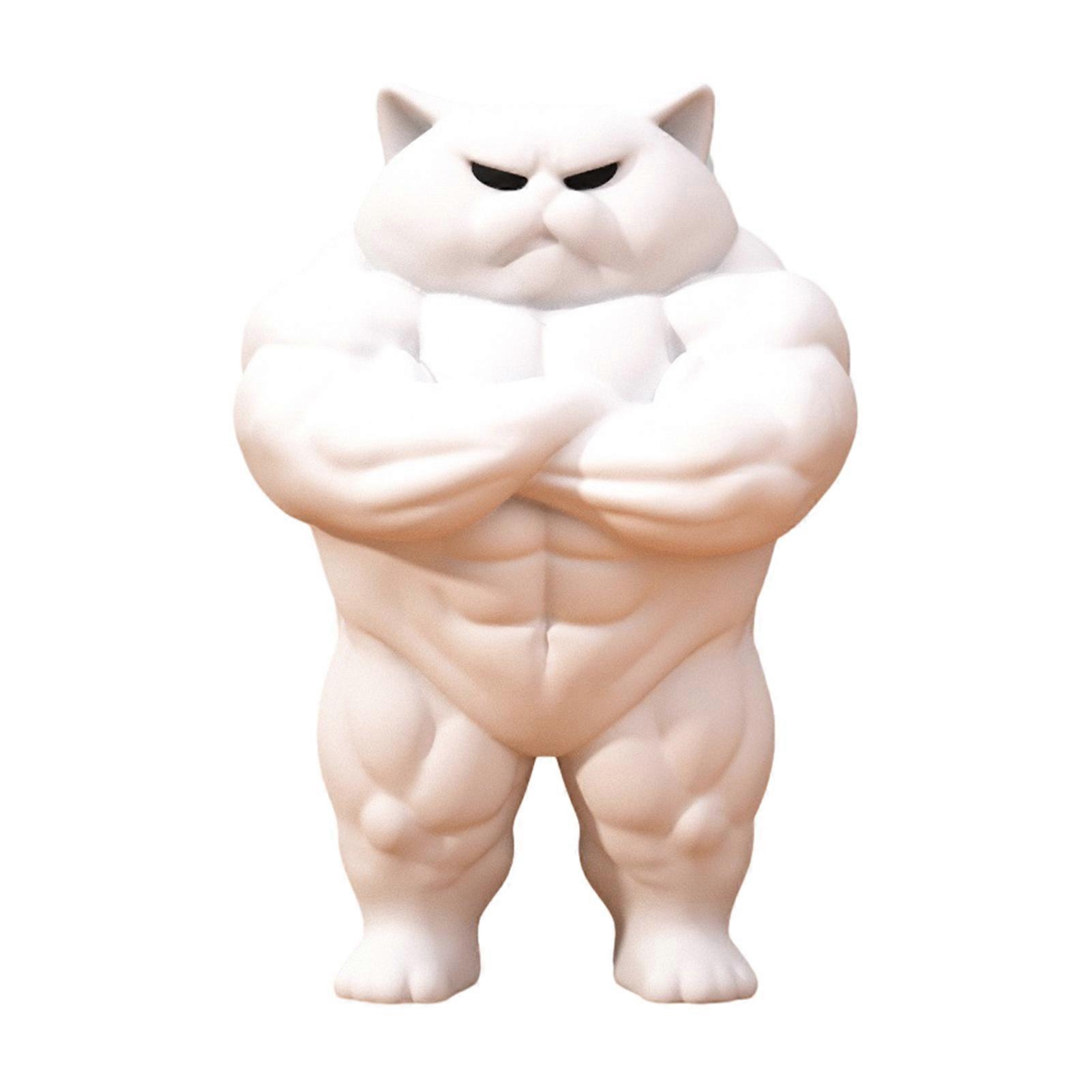 3D Printed Muscular Cat Figurine, White Decorative Statue, Standing Pose, Detailed Anatomical Design, Collectible Home Decor