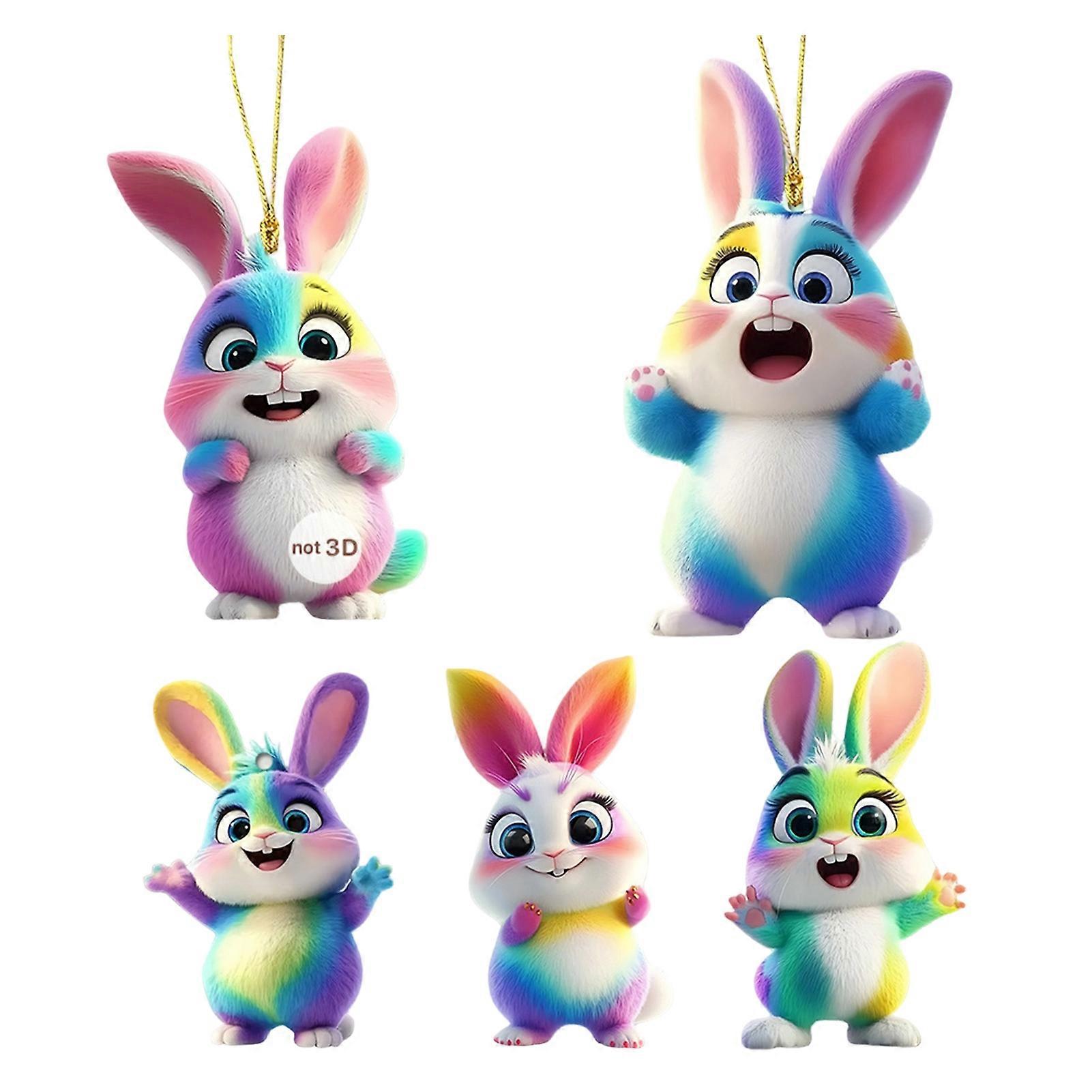5Pcs Rabbit Pendant Acrylic Cute Rainbow Rabbit Hanging Ornament Doors Windows Bags Charm Car Rearview Mirror Easter