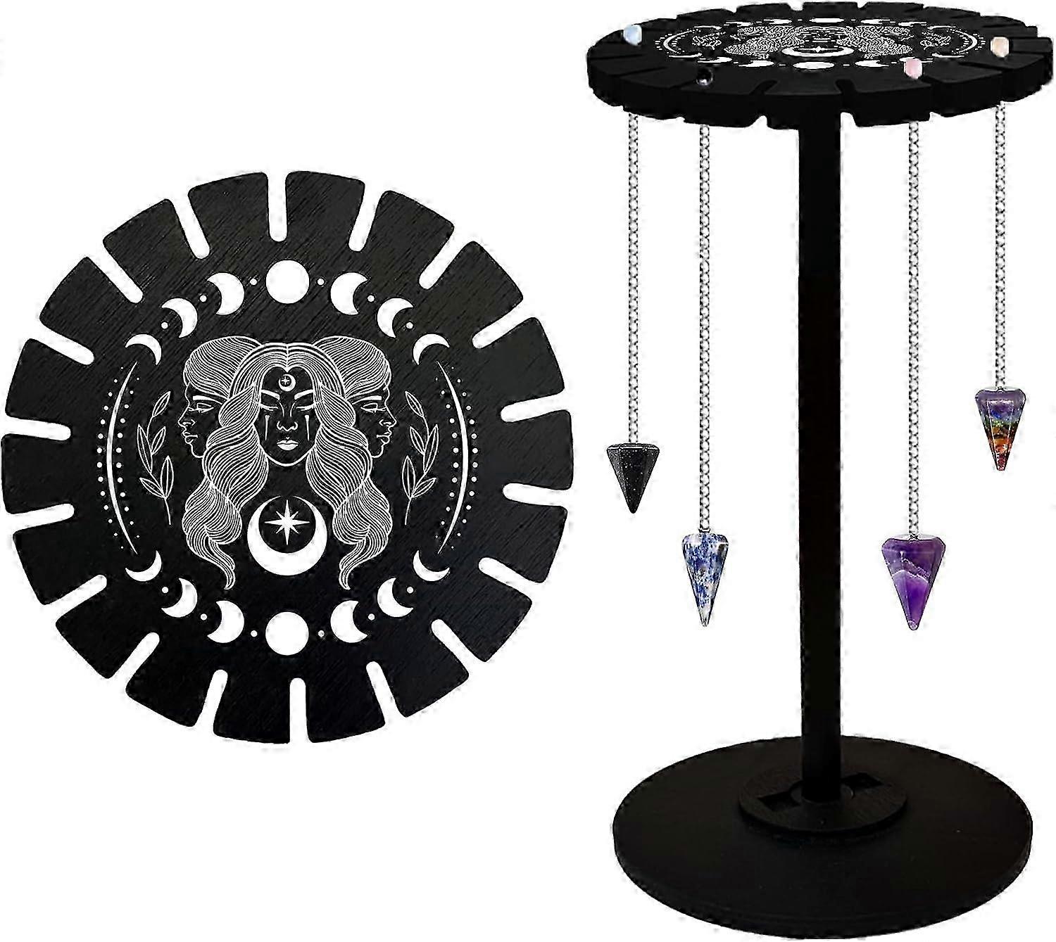 2025 Goddess Pendulum Stand Crystal Display Shelf Black Wooden Divination Dowsing Wheel Pendulum Holder Witch Stuff Crystal Shelf Display for Stone Ne
