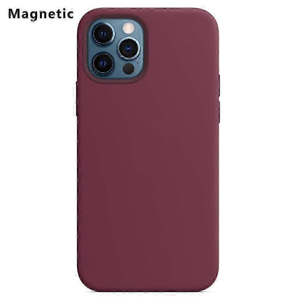 2025 For iPhone 12 Pro Max Compatible with MagSafe Liquid Silicone Phone Back Cover (No Logo) - Wine Red