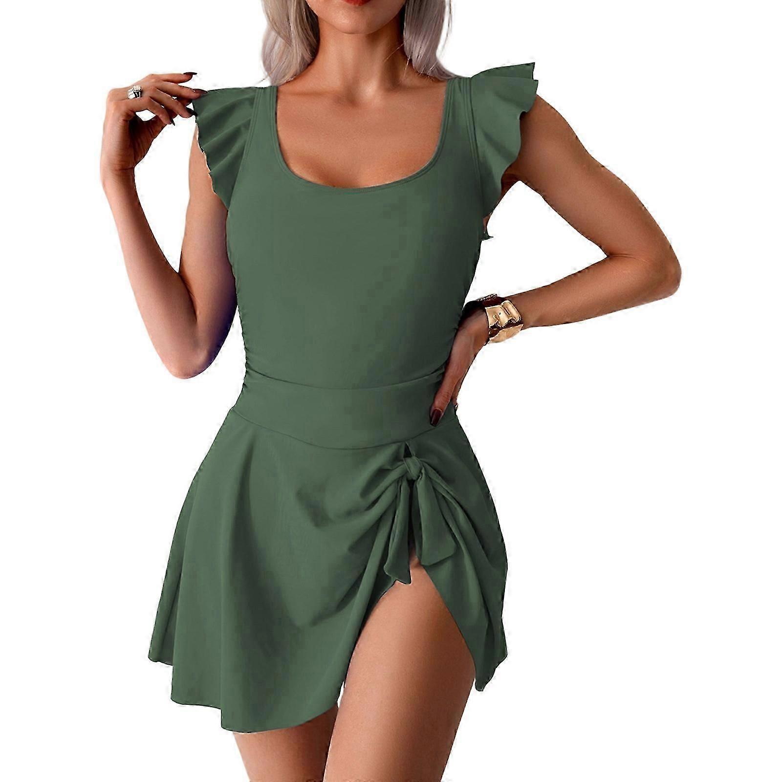 Women Ruffled Skirted Swimwears 1 Piece Swim Dress with Briefs Scooped Neck Belly Control Swimdress Skirted Swimsuit Royal Blue XXL