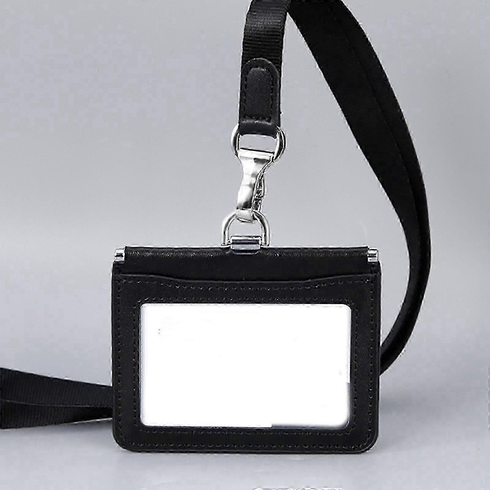 Leather ID Card Holder with Detachable Neck Strap for Office Use - KM