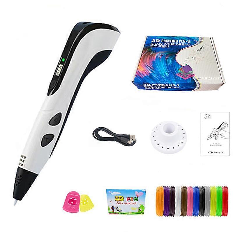 3D Printing Pen with Base, 3D Printer Pen with 12 Starter Colors of PLA Filament and USB Charging Cable