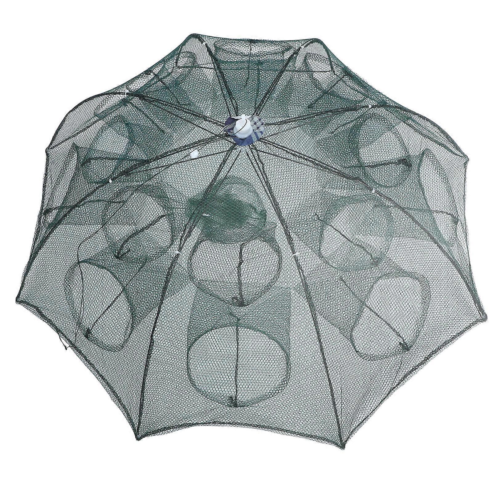 Crab Fishing Nets Umbrella Shaped Portable Durable Nylon Mesh Green 16 Holes Style For Pond River Lake Fishing 1Pack