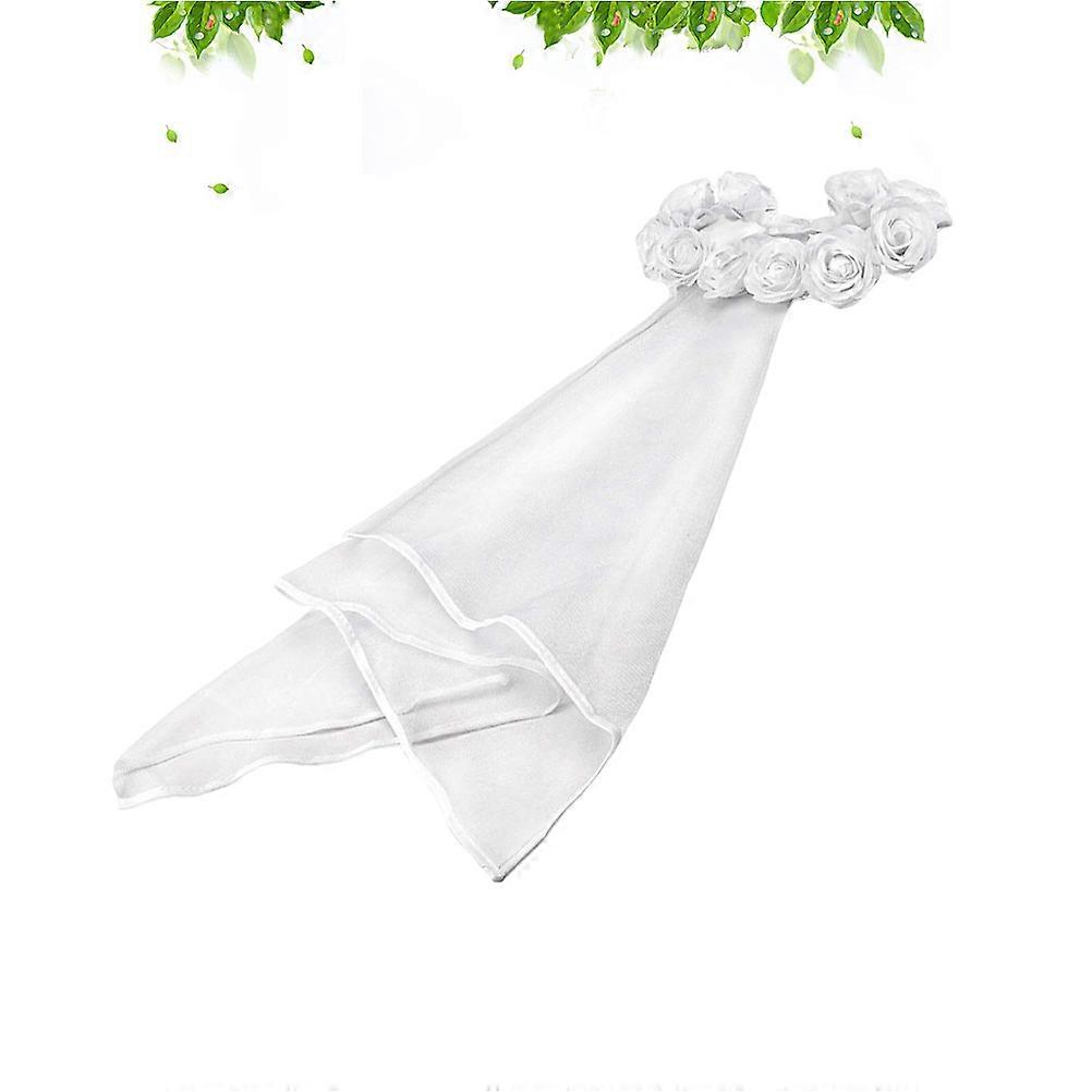 White Bride Veil Rose Decor Garland Veil for Wedding Bride