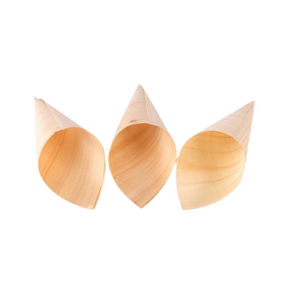 Disposable Ice Cream Hand Rolled Wooden Cone Cups for Food Holding 50Pcs