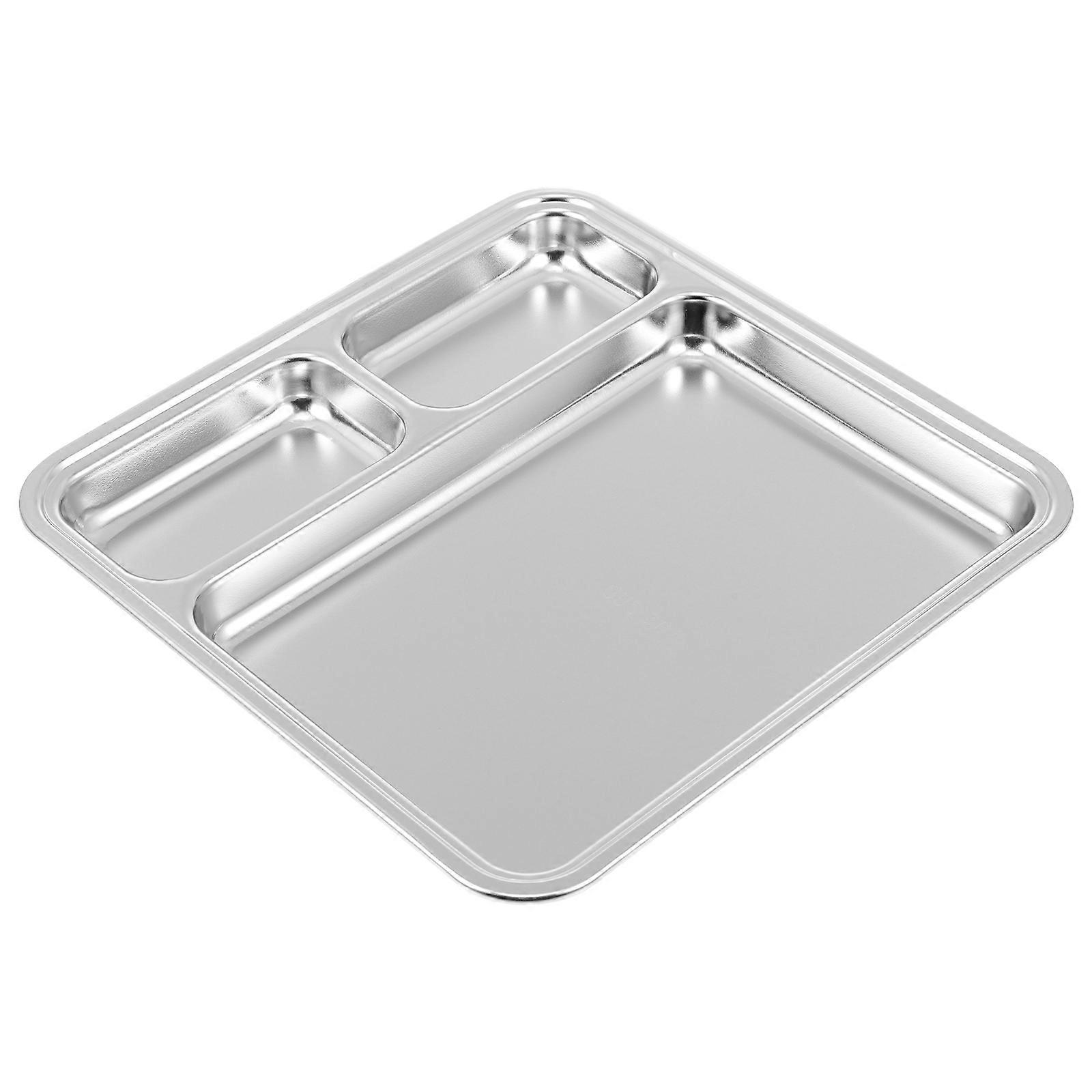 Portion Control Divided Plate Stainless Steel Dinner Plate For Restaurant Use Silver 22.4X22.3X2.2CM Outdoor Activities 1Pack