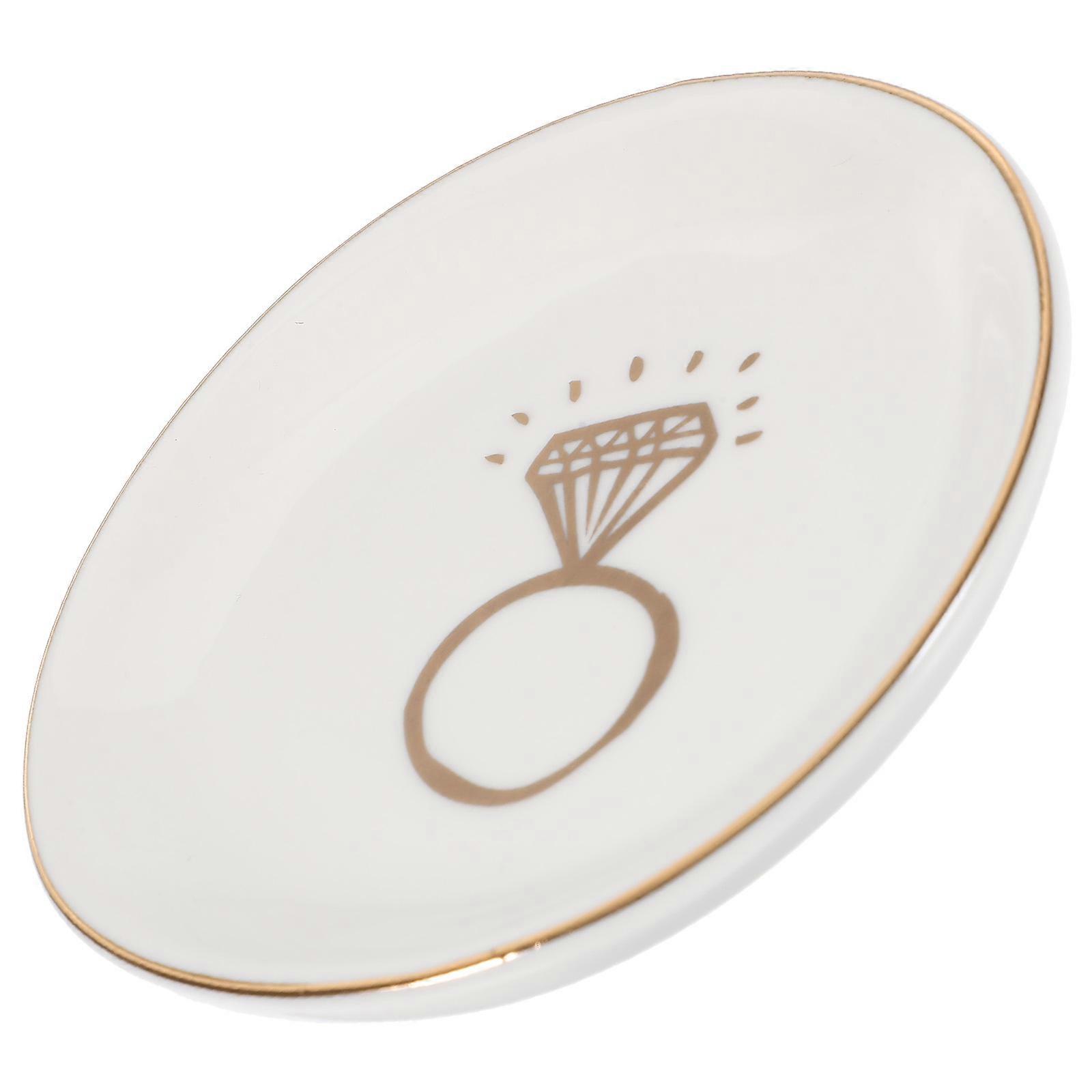 White Ceramic Jewelry Dish for Displaying Rings Necklaces Earrings with Elegant Design 4.5 Inches