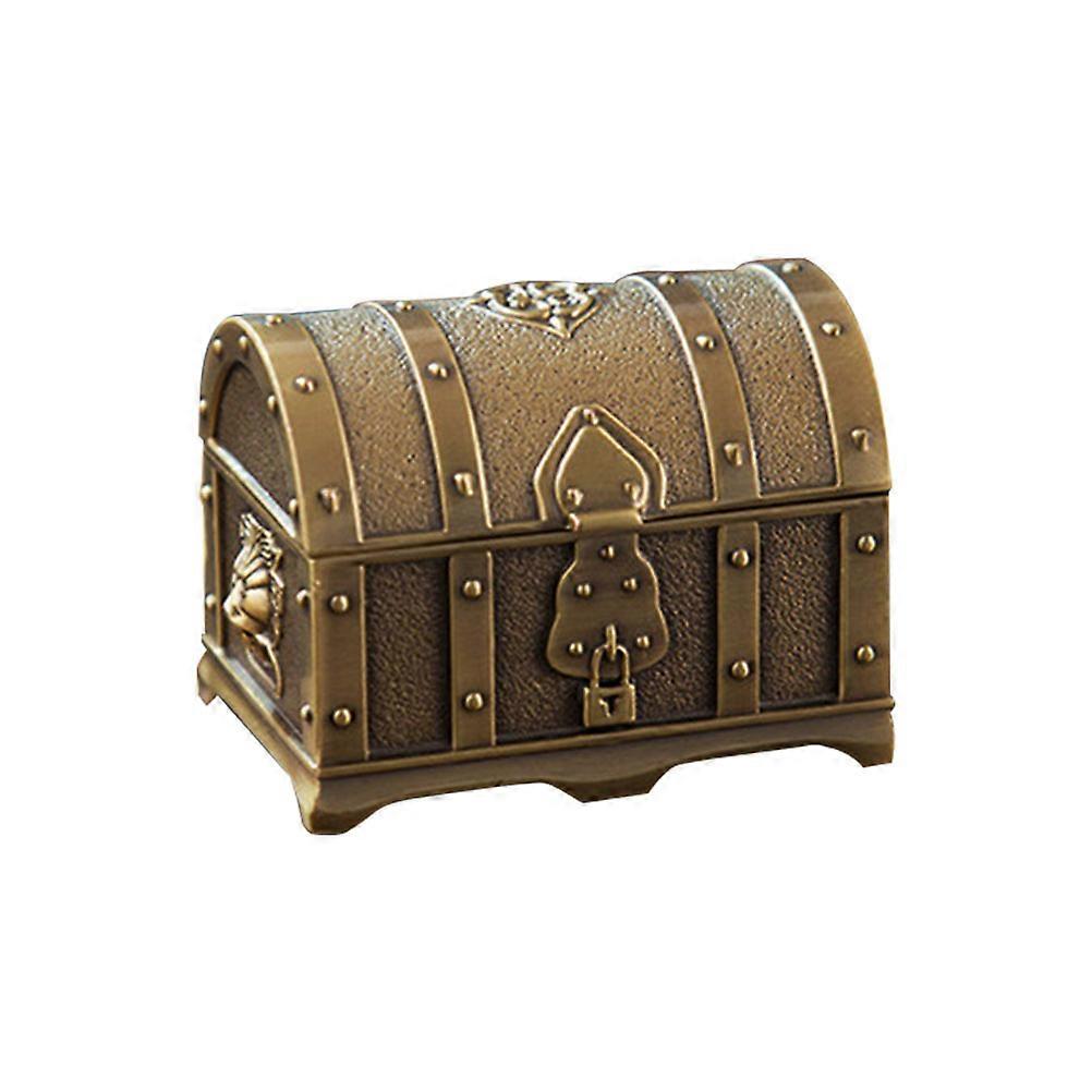 Made of alloy material for durable and use. Commonly used as jewelry organizer, magazine, cosmetics storage box, trinket holder, storing memorabilia, lock box, spice box. The treasure chest is hand made, using simple artisan tools and , decorated with beautiful pattern carvings. Features - ColorGolden - Material: Alloy. - Size: About 7.5x5.5x5.3cm. - Made of alloy material for durable and use. - Round rivets are placed on the surface to give a rugged feel. - The treasure chest is very suitable for keeping jewelry,earrings, rings,etc. - Adds to your living room or home decor while being useful too. - Perfect for studies, living rooms, kids' playrooms, garages, attics and more! - Also makes for a beautiful gift for your friends. - Warm Tip: Dear buyer, due to lighting effect, monitor's brightness, manual measurement, etc., there could be some slight differences in the color and size between the photo and the actual item. Sincerely hope that you can understand! Thank you! Package list: 1 x storage box