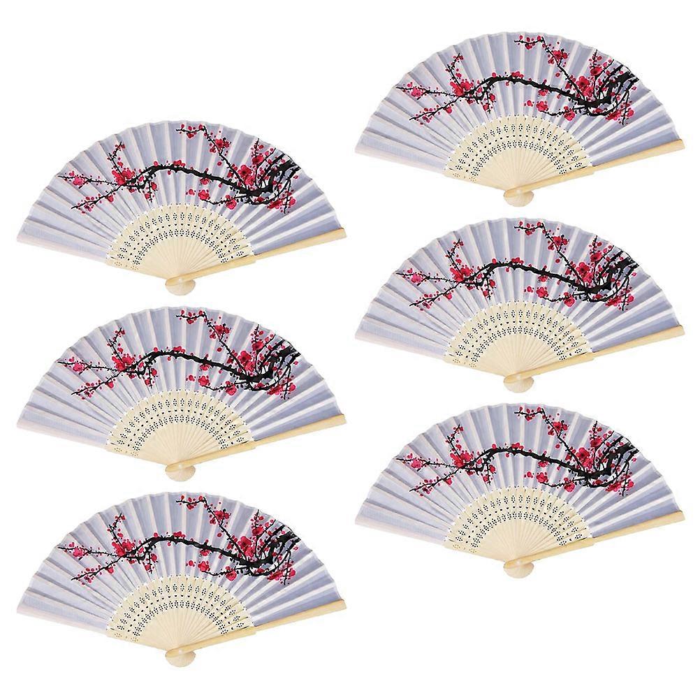 Japanese Style Hand Fan Retro Design Floral Folding Fans Wall Decoration 38x21cm Dancing 6Pcs