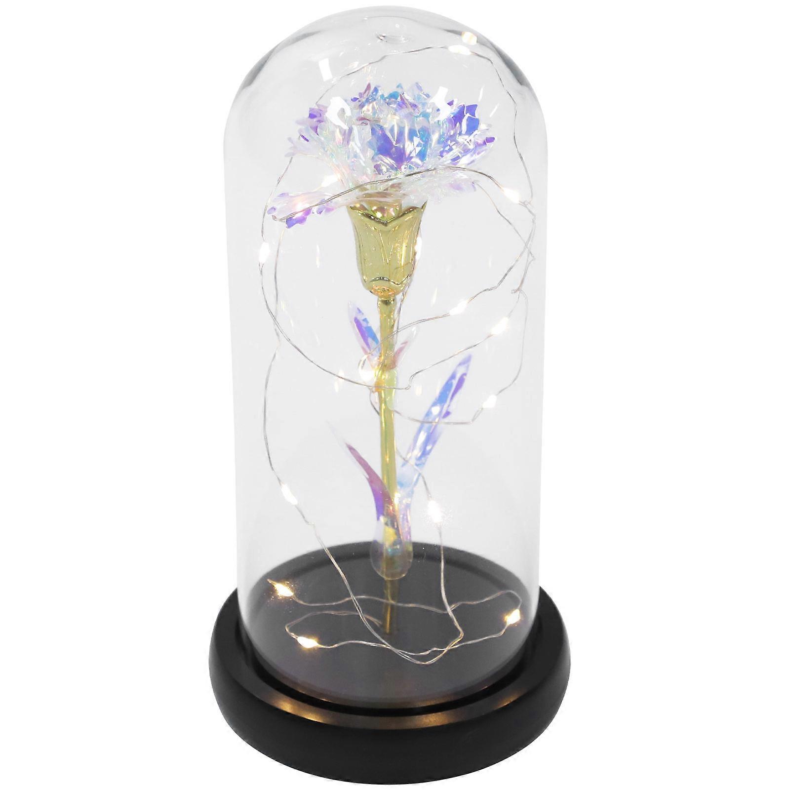 Flower Adornment Preserved Carnation in Glass Home Desktop Decoration 21x10.5x10.5cm Plastic Material 1Pcs