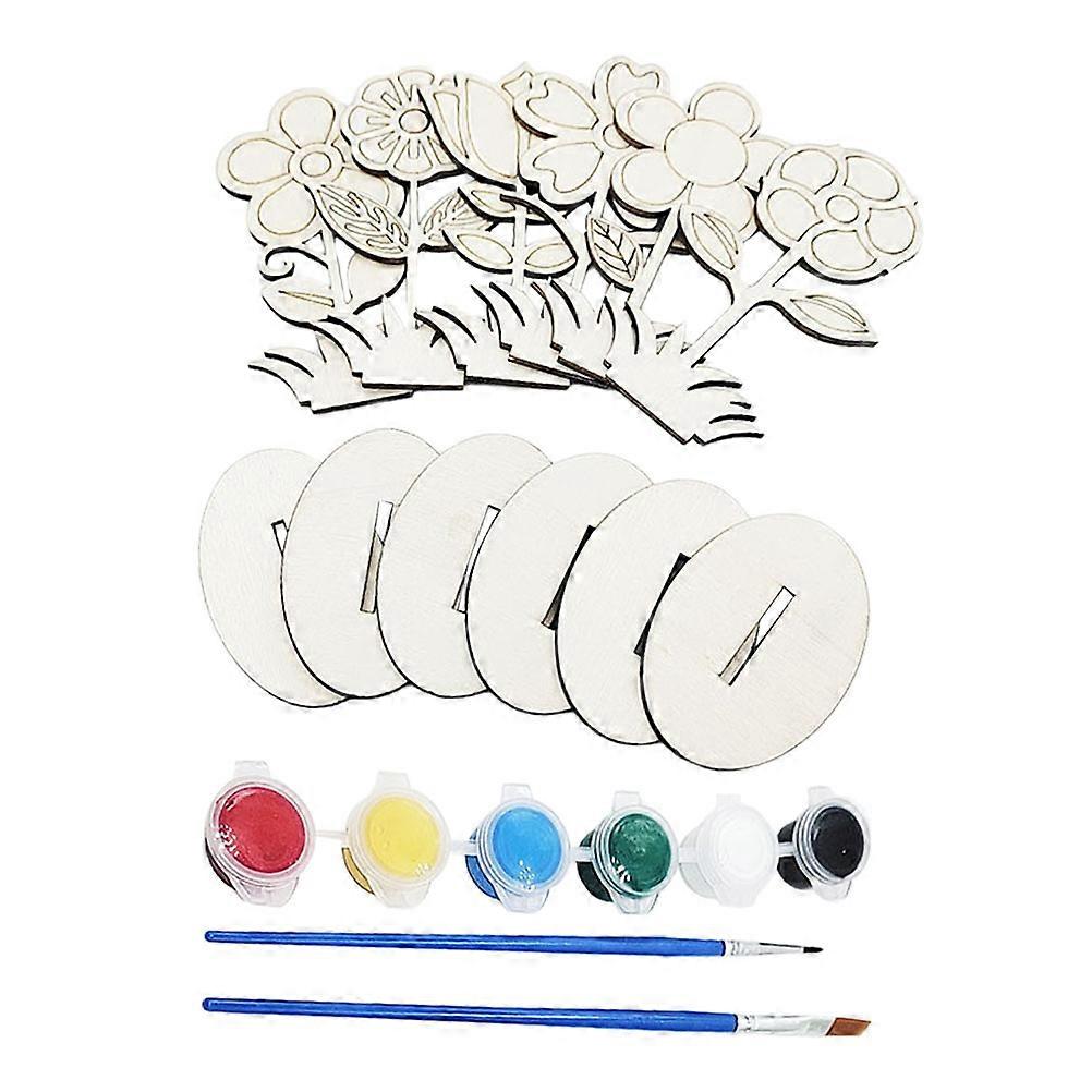 Wooden DIY Toy for Kids Creative Flower Painting Kit 1Set Easter Decoration