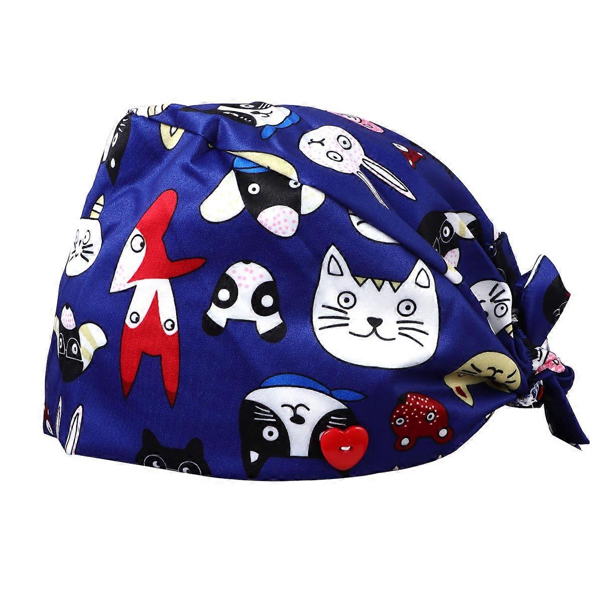Unique Printed Dark Blue Working Hat For Women With Protective Functions Suitable For Beauty Use 1Pcs