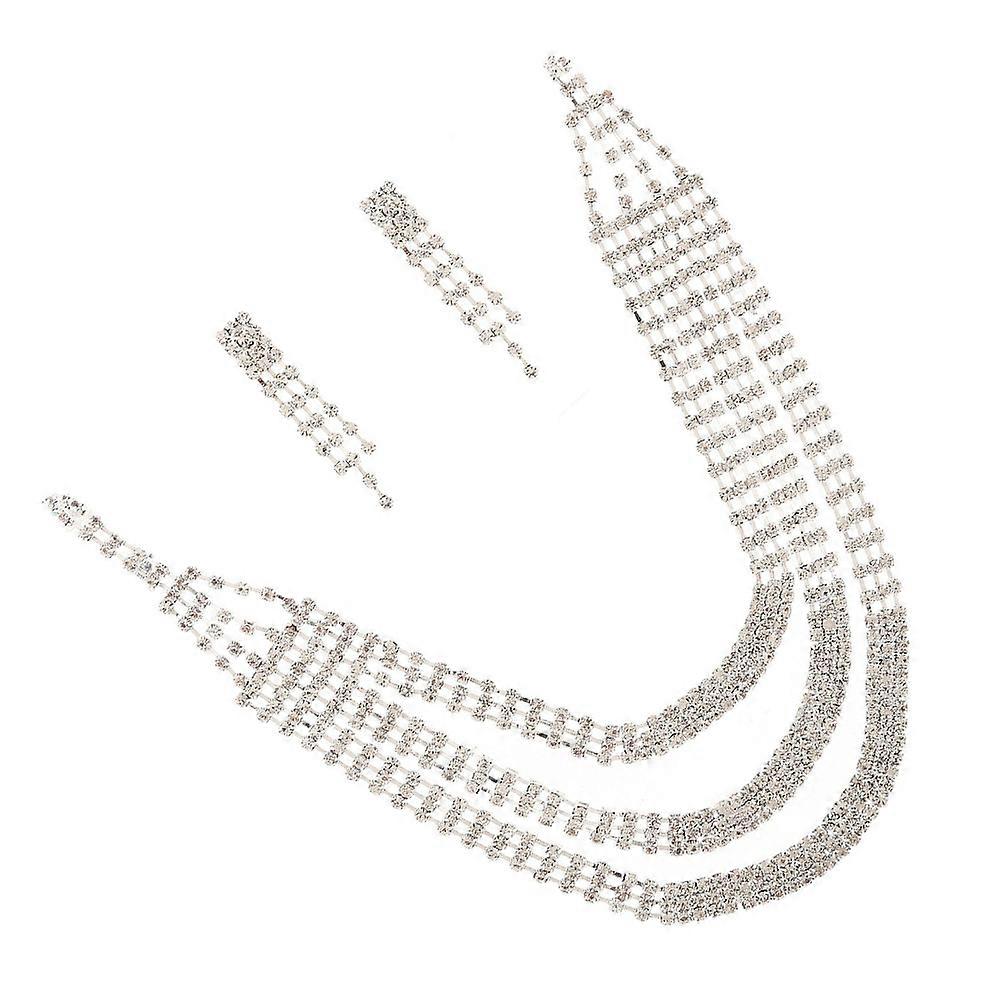 Rhinestone Necklace Earring Set Bridal Jewelry Shiny Wedding Evening Party 1 Set