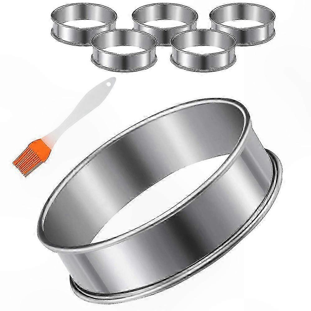 6-Pack Stainless Steel Muffin Rings for Baking, Double Rolled Crumpet Tart Rings for Perfect English Muffins