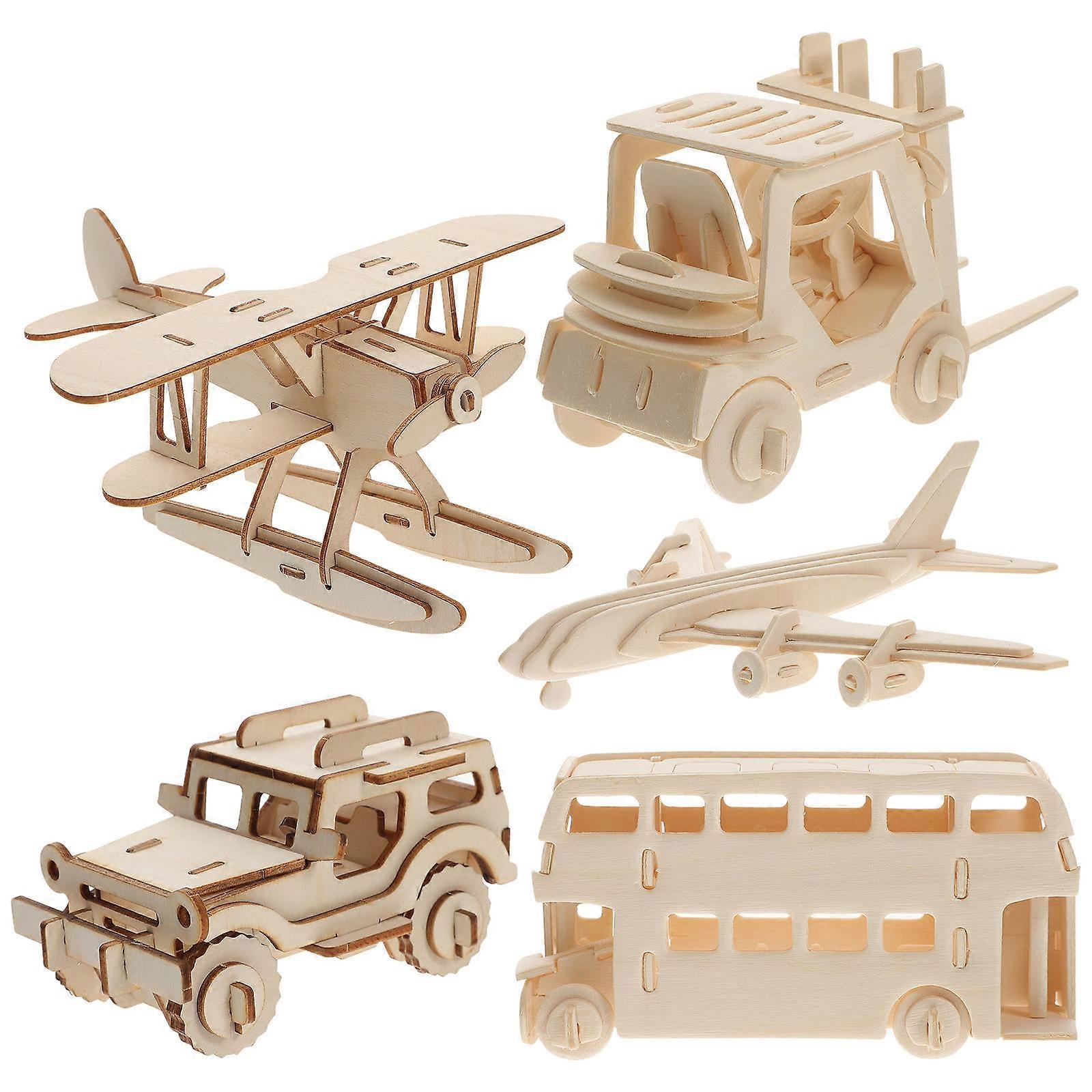 Wood Model Airplane Toys for Building Khaki Wood Hand-Eye Coordination 5Pcs