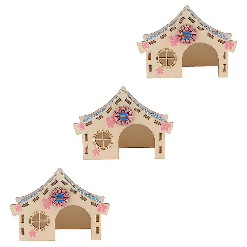 Hamster Playhouse 3Pcs Villa Shape Pet Toys For Indoor Play With Chew Function Made Of Natural Wood