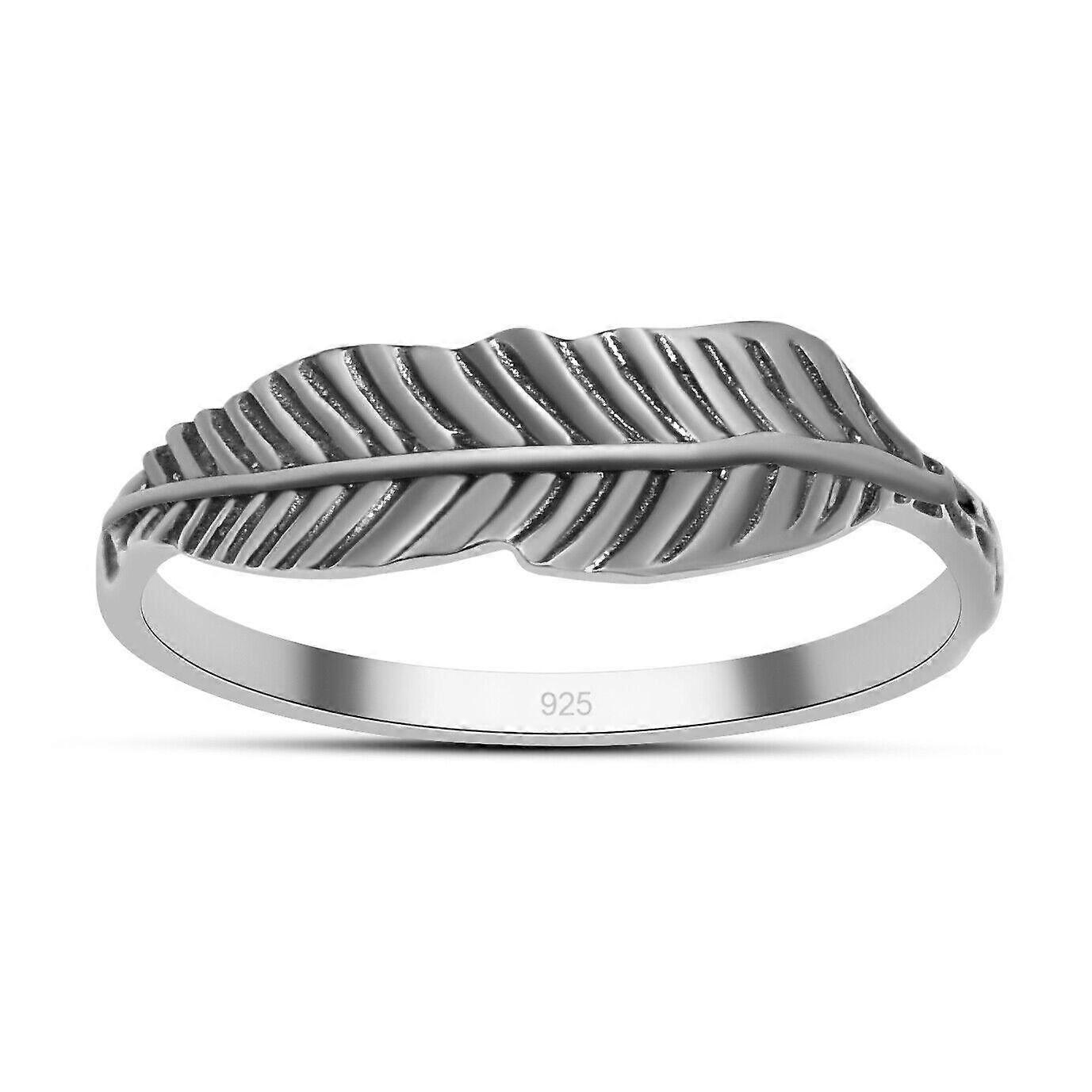 Oxidized Leaf Feather Ring Solid 925 Sterling Silver Textured Band Rings HR-254
