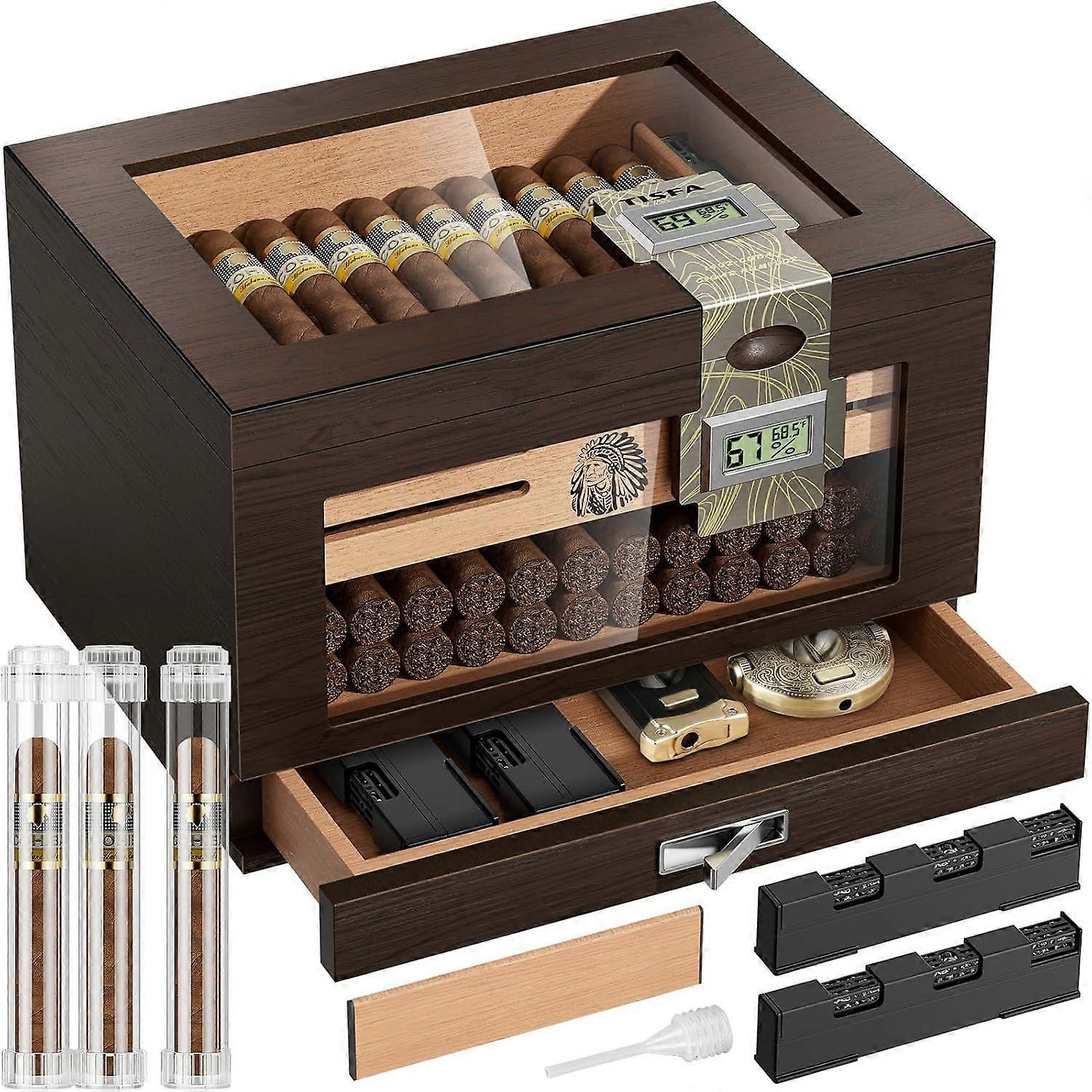 Cigar Humidor Cedar Wood Cigar Box with 2 Digital Hygrometer, 2 Humidifiers,