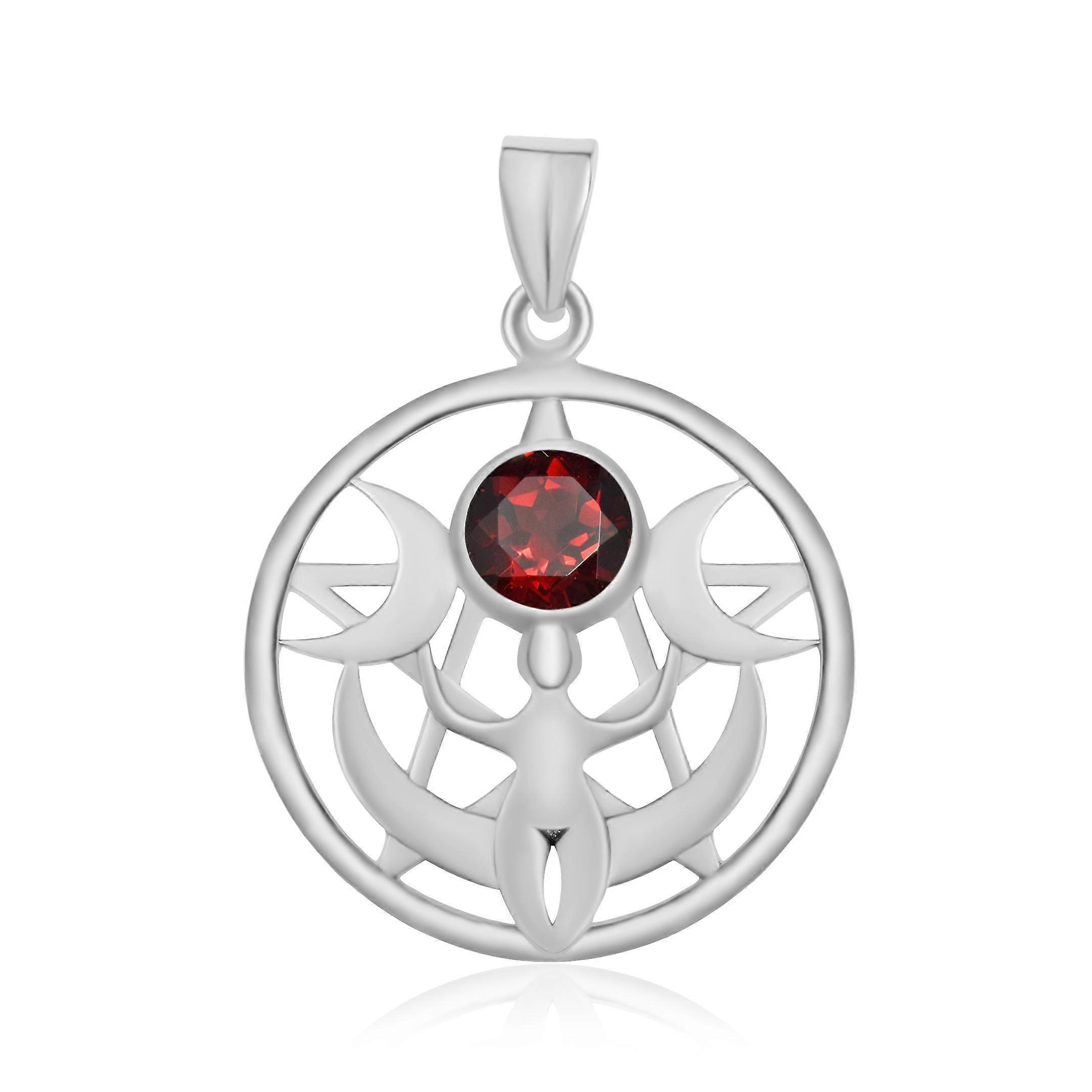 Triple Moon Goddess Celtic Pentagram Pentacle Pendant 925 Sterling Silver Natural Garnet Gemstone Pendant For Unisex