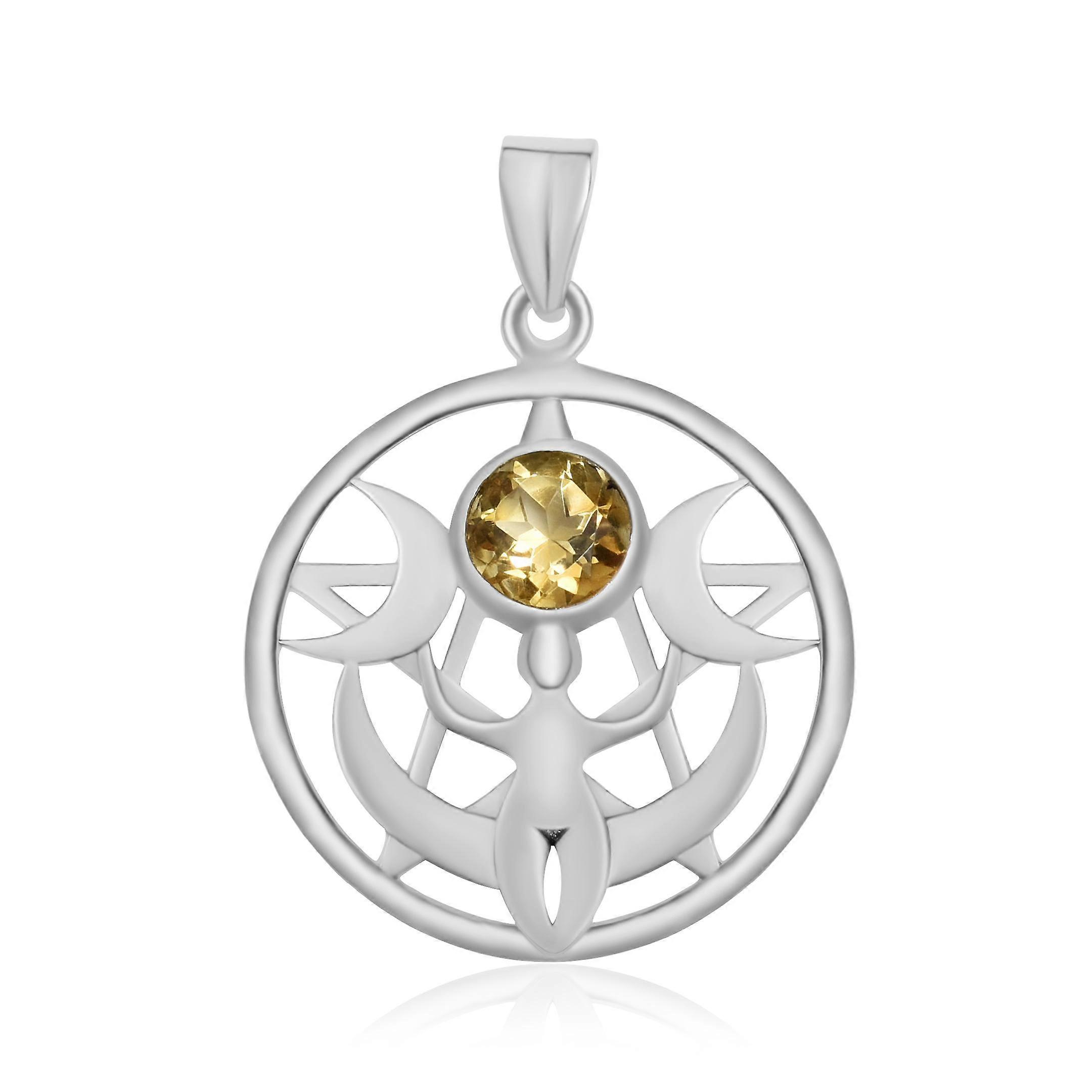 Triple Moon Goddess Celtic Pentagram Pentacle Pendant 925 Sterling Silver Natural Citrine Gemstone Pendant For Unisex