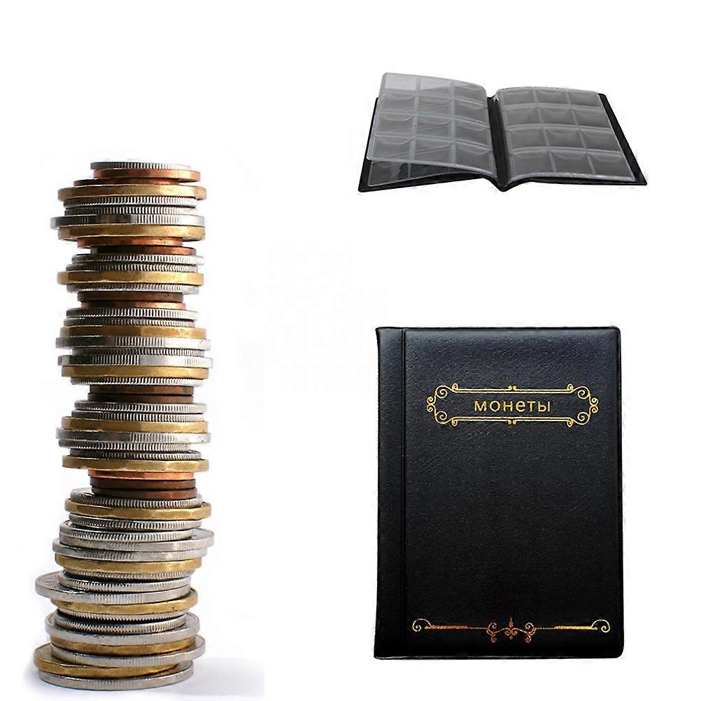 Coin Book for Collection Use in Black with 120 Transparent Pockets
