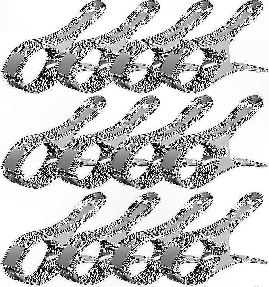 Large Stainless Steel Clothespins, 12 Pack Non-Slip Durable Pegs for Towels, Quilts, and Garments
