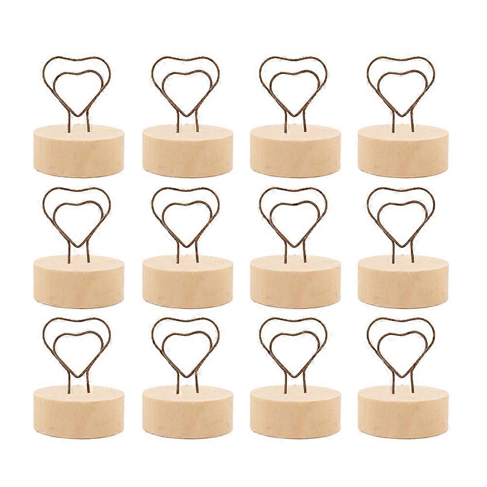 Light Yellow Heart Shape Wooden Memo Holders For Photos Wedding Party Use 12 Pcs Decoration