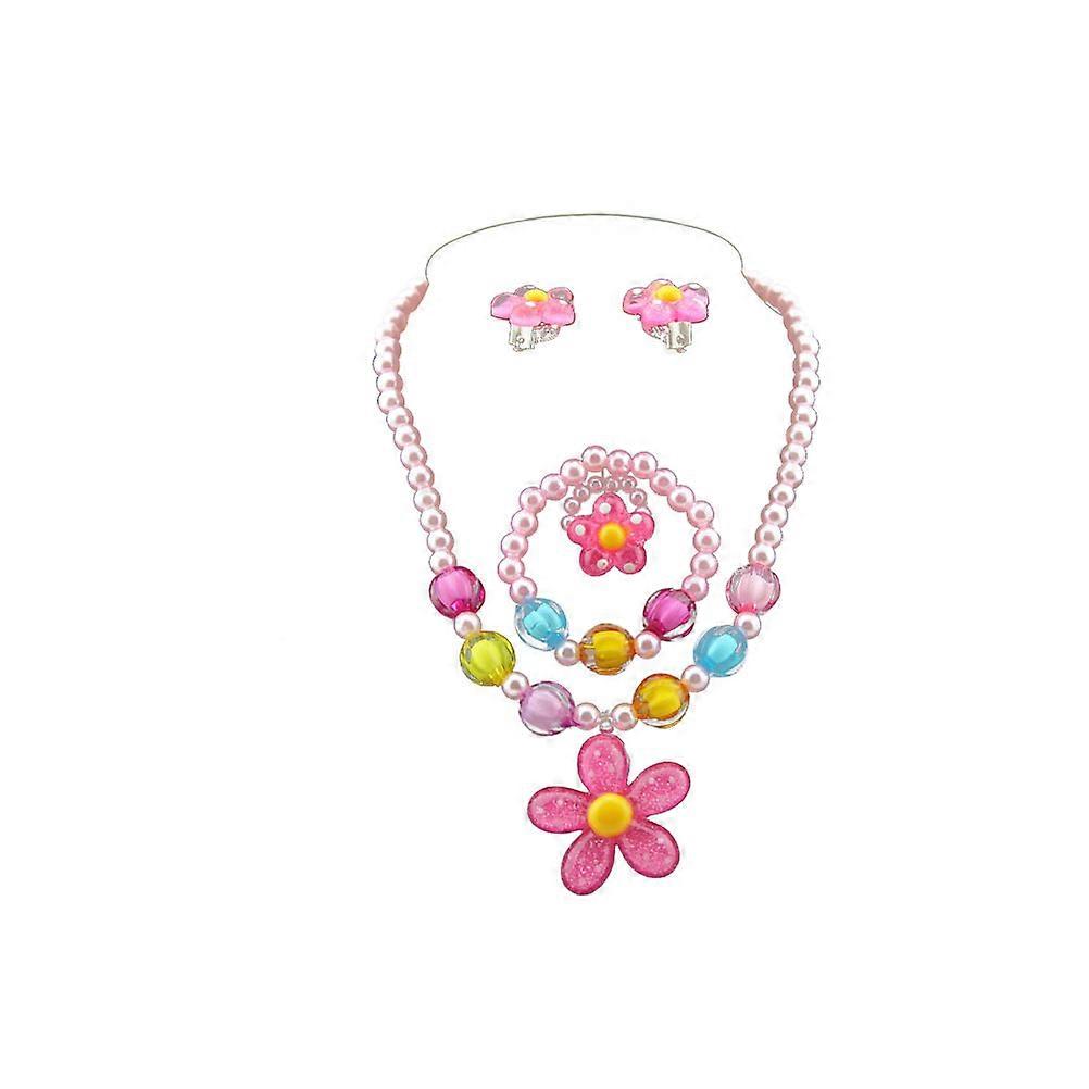 Plastic Flowers Necklace Bracelet Set for Kids 2Set Cartoon Jewelry Kit