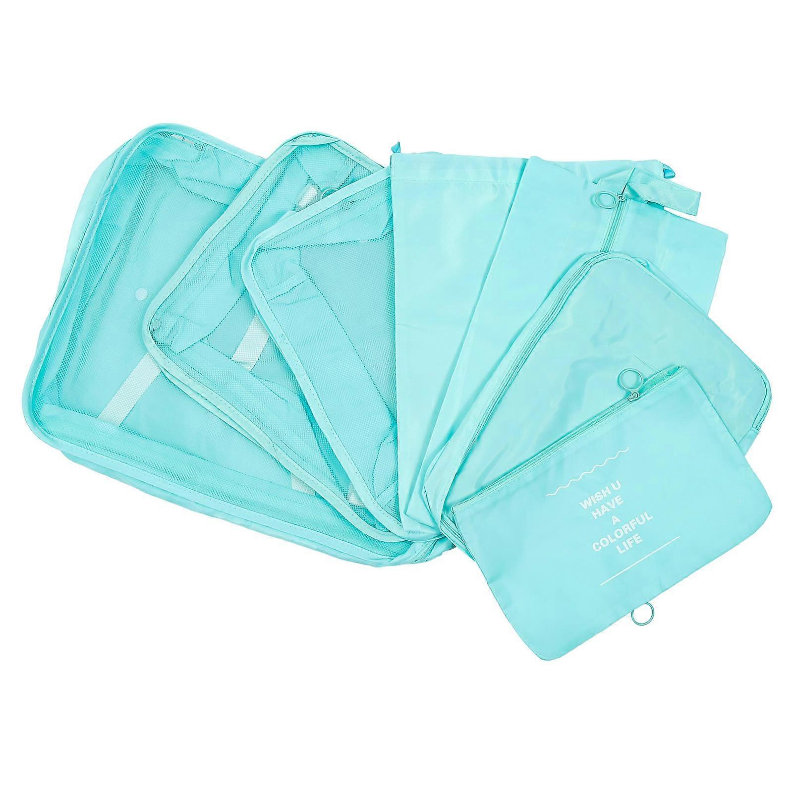 This travel luggage bag is manufactured with for durable and use. Different size of capacity and multifunctional, simple and stylish design. It's convenient to stuff daily necessities for traveling. Features - Material: Polyester - Clothing Bag Size 1: About 40x30x10cm/15.75x11.81x5.9in - Clothing Bag Size 2: About 30x25x10cm/11.81x9.84x5.9in - Clothing Bag Size 3: About 28x20x10cm/11.02x7.87x3.94in - Underwear Bag Size: About 27x20x10cm/10.63x7.87x3.94in - Shoe Pouch Size: About 33x20cm/13x7.87in - Drawstring Bag Size: About 30X25cm/11.81x9.84in - Size: About 25x15cm/9.84x8.9in - Manufactured with premium polyester material, durable and practical to use. - Good for storing and sorting cosmetics, washing tools, clothing, headdress and so on. - Suitable for outdoor, camping, traveling and other activities' items storage. - Help you easily organize all your essential items. You will have a relaxing holiday. - Great for active lifestyles including traveling, backpacking, camping, gym, beach, or yoga. Package list: 3 x Clothing Bags 1 Bag 1 x Shoe Pouch 1 x Drawstring Bag 1 x