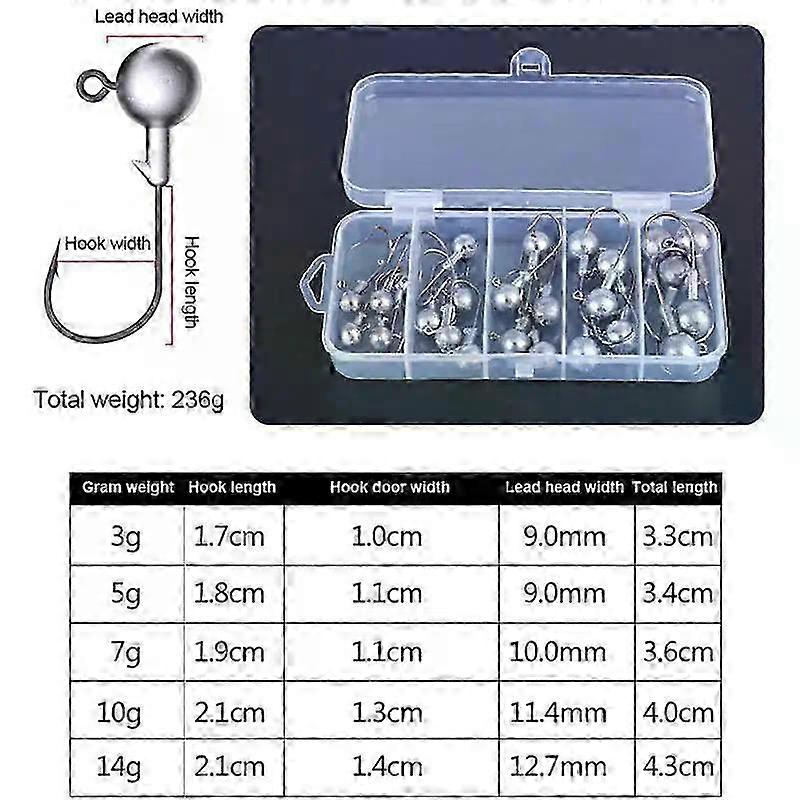 2026 3.5g-14g Outdoor Fishing Fishhooks Fishing Hooks Silver Ball Lead Head Sharp Durable Jelly Grubs Worms Soft Bait Fishing Hooks
