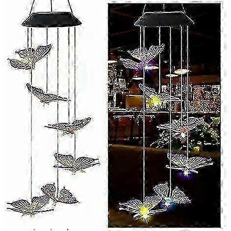 LX-Solar Wind Chime Light-Purple Yellow Butterfly-Solar Garden Light 26-27s